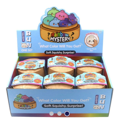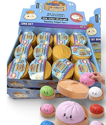 Elke dumpling is maar liefst 8,5 cm groot, dus heerlijk om vast te houden, te knijpen of neer te zetten als schattige desk‑buddy. En het leukste? Je weet nooit welke kleur je krijgt! Elke verpakking bevat één dumpling‑vriendje, maar welke van de kleine vriendjes erin zit blijft een verrassing.