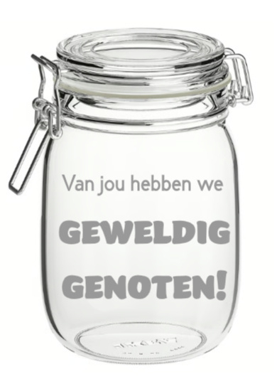 🎁 Origineel Cadeau: Geef een uniek cadeau aan vrienden, familie of collega’s. Een gepersonaliseerde weckpot met hun naam erop zal zeker gewaardeerd worden!