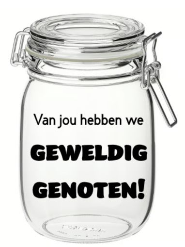 Bewaar je favoriete lekkernijen, kruiden of zelfgemaakte jam in stijl met onze prachtige gepersonaliseerde weckpotten. Met een inhoud van 1 liter zijn ze perfect voor allerlei…
